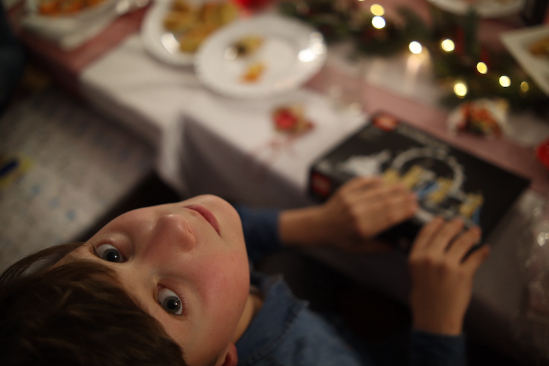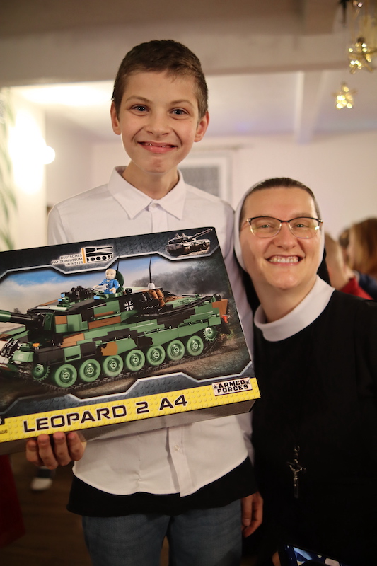 Po Mszy dzieci przedstawiły wszystkim zebranym przygotowane jasełka. Powiedzieć, że znakomici z nich aktorzy to jak nie powiedzieć nic! Byli wręcz perfekcyjnie przygotowani i zachęcali wszystkich widzów do wspólnego kolędowania. Po jasełkach wszyscy podzieliliśmy się opłatkiem i złożyliśmy sobie życzenia. Następnie zeszliśmy na pięknie przystrojoną jadalnię, gdzie w klimacie świątecznym spożywaliśmy wspólną kolację. W czasie kolacji odwiedził nas (spodziewany szczególnie przez dzieci) Święty Mikołaj. Nie od razu dał wszystko, co miał w worku. Dokładnie i skrupulatnie sprawdzał, czy dzieci- i dorośli- byli grzeczni w tym roku. Wręczanie prezentów przeplatane były kolędami. Dzieci z coraz większym uśmiechem i wypiekami na twarzy otwierając prezenty, o których marzyli. Wieczór spędziliśmy wspólnie rozmawiając przy choince.