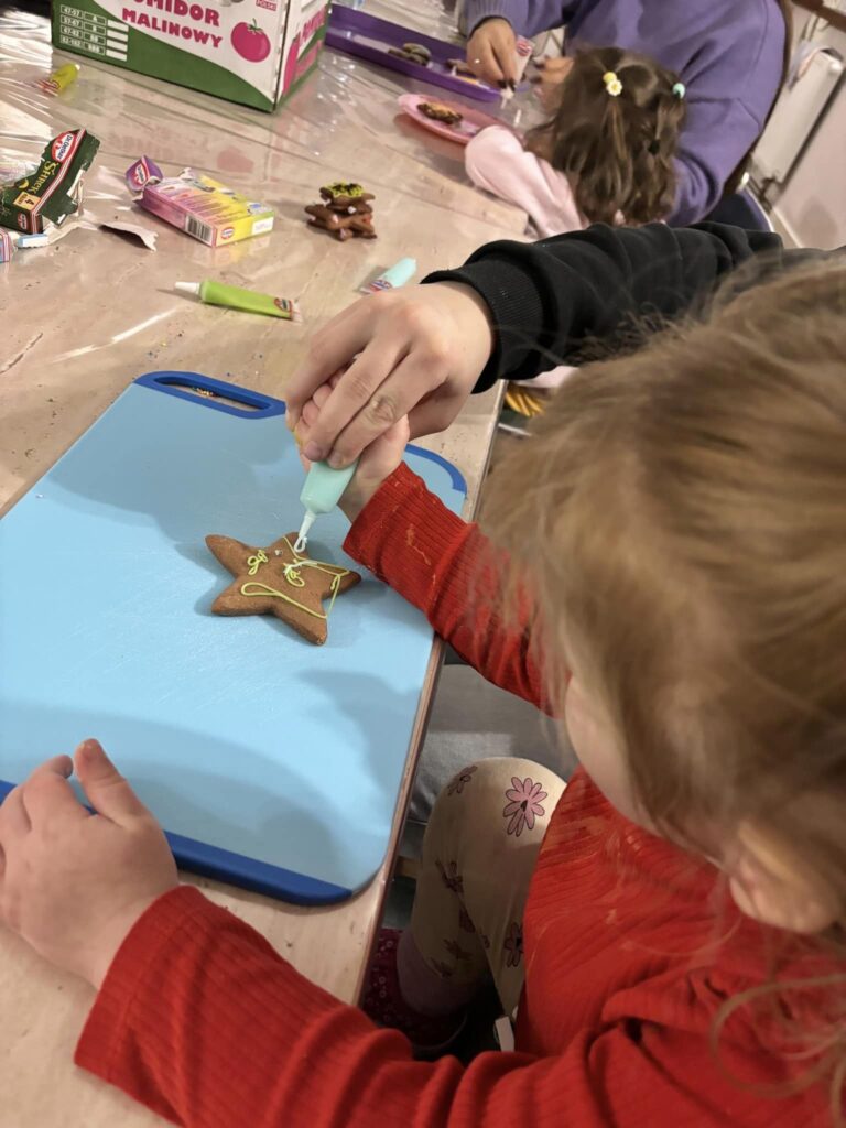 Kiedy wypieki ostygły do pracy zabrały się dzieci z naszej placówki. Kolorowy lukier, słodka posypka i ozdobne spożywcze pisaki były bardzo pomocne podczas dekorowana cukierniczych wyrobów.